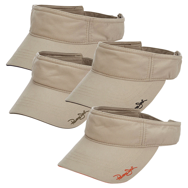 The garment washed twill visor is a classic sports visor. Featuring a classic 2-inch open crown and pre-curved visor/bill, it is finished with the Panama Jack embroidered signature and a velcro closur…