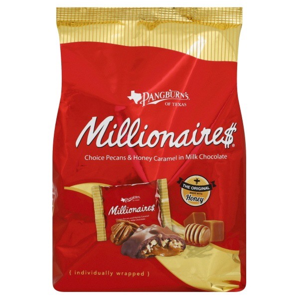 PANGBURN'S OF TEXAS Millionaires Milk Chocolate Covered Pecans and Honey Caramel Candy, 16.75 oz., contains approx. 28 generous pieces of buttery pecans and creamy caramel topped off with mouthwaterin…