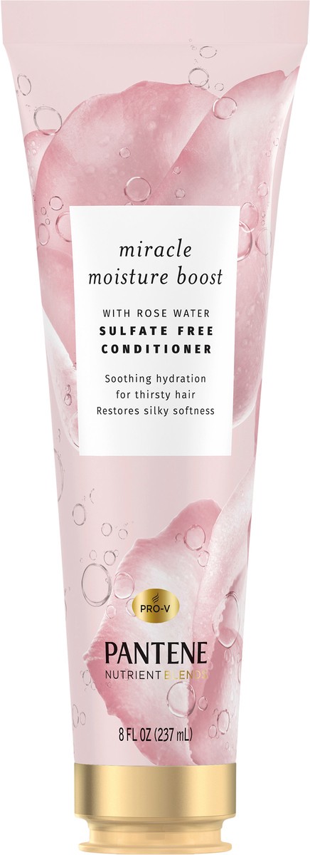 Pantene NutrientBlends Miracle Moisture Boost Rose Water Conditioner is just what you need to deliver soothing hydration for thirsty hair. This frizz-taming formula helps restore silky softness to stu…