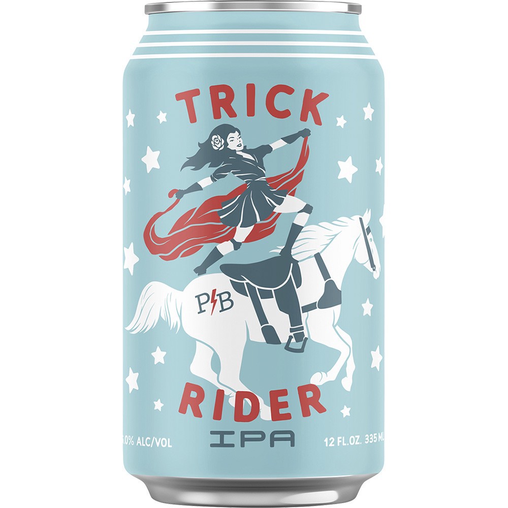 United States - Texas - Trick Rider is an American IPA made with Cascade and Centennial Hops, and then dry hopped with Mosaic. This particular hop blend imparts a berry and tropical fruit aroma and fl…