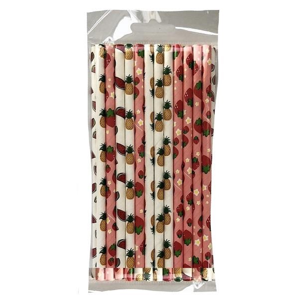 25ct Paper Straw Fruit Design Clip Strip