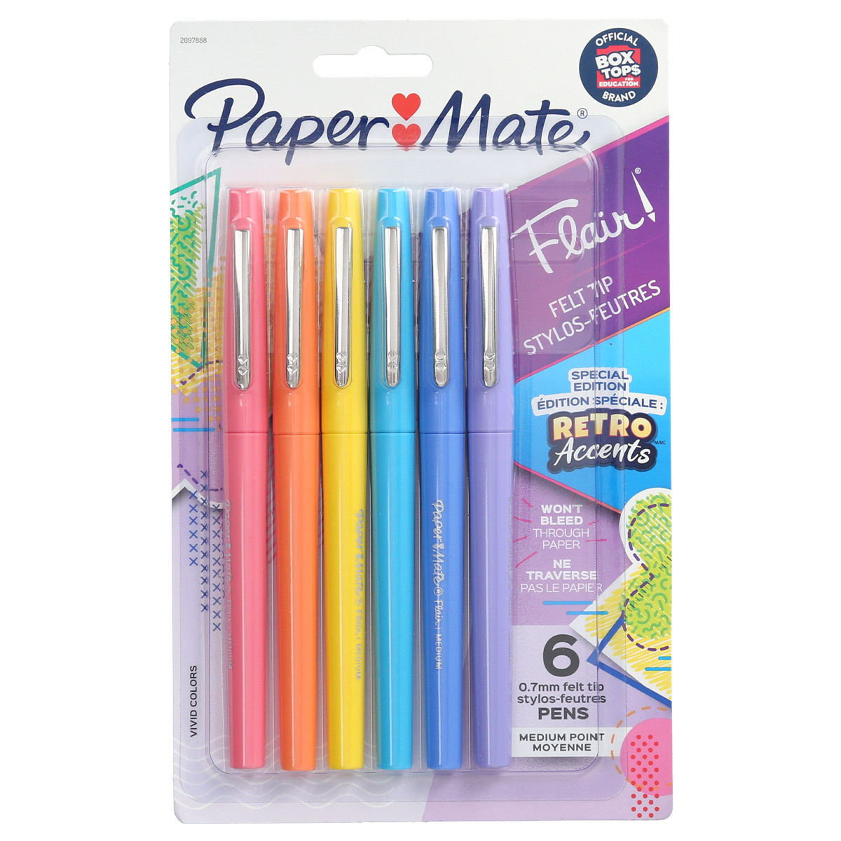 Paper Mate Flair Felt Tip Pens, Medium Point, Assorted, Special Edition Retro Accents, 6 Pack