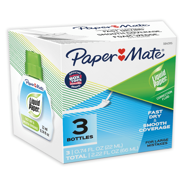 slide 3 of 4, Paper Mate® Liquid Paper® Correction Fluid, Fast Dry & Smooth Coverage, White, Pack Of 3, 3 ct