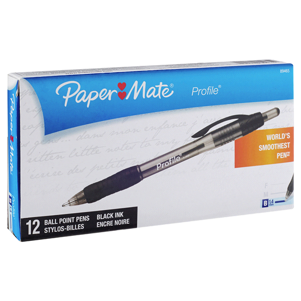Enjoy bold lines and an incredibly smooth writing experience with Paper Mate Profile Retractable Ballpoint pens. Featuring a bold 1.4mm tip and rich black ink that resists smearing, you can write powe…