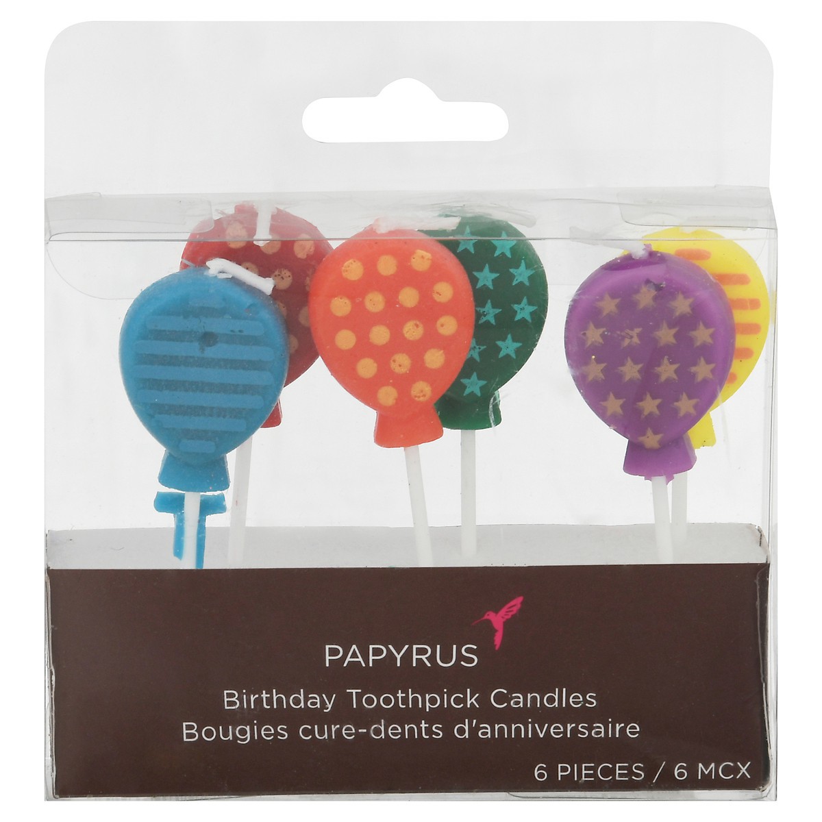 Light up a birthday cake or other treats and celebrate any occasion with decorative candles by Papyrus! This set of 6 toothpick candles (2 each of 3 designs) features bright and colorful balloons with…