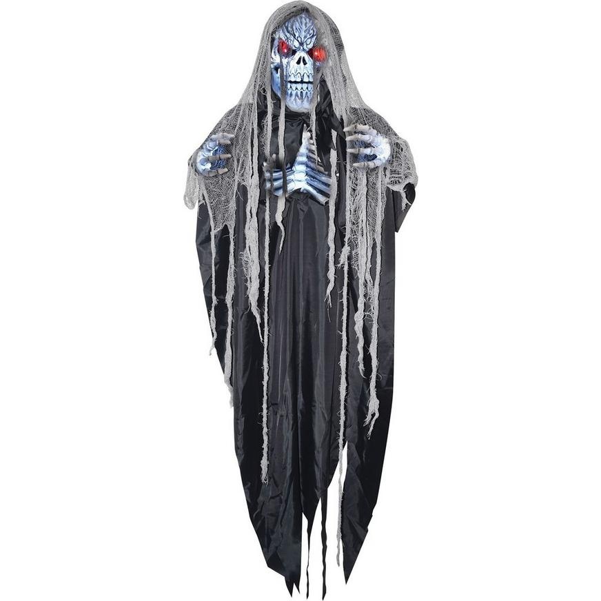 An eerie feeling will tower over passers by on Halloween when you decorate with an Animated Shocking Reaper Decoration. This sixfoot tall reaper wears a long black and gray cloak that exposes parts of…