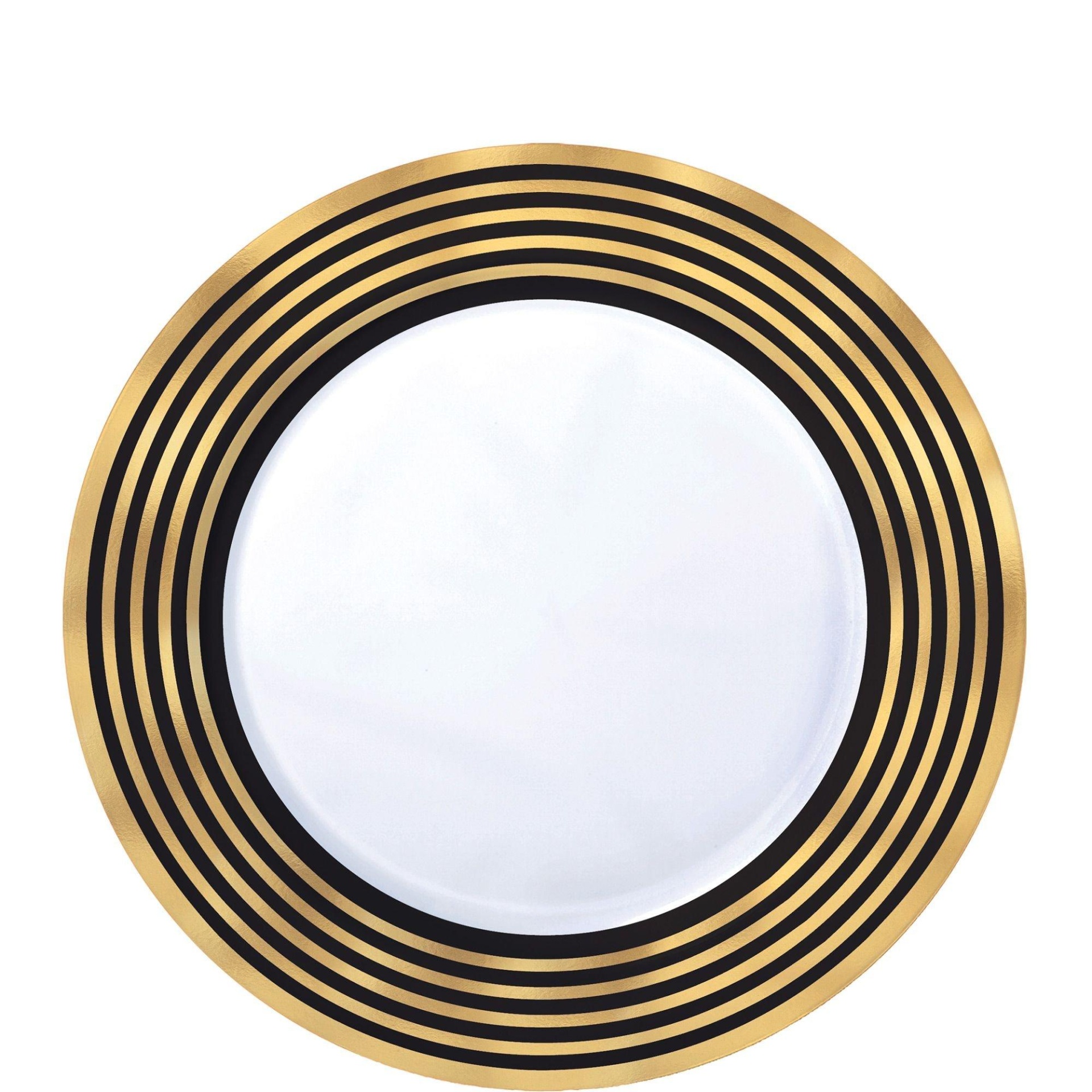 Party City Black & Metallic Gold Stripe Premium Plastic Dessert Plates