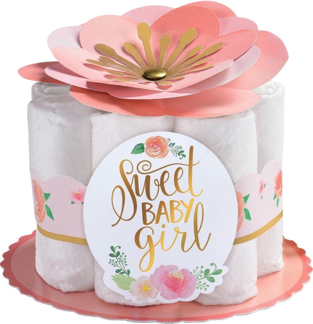 Create an elegant decoration that doubles as a present for the parents to be with a Floral Baby Diaper Centerpiece Kit This kit includes pink bases pink flower embellishments paper strips and paper em…