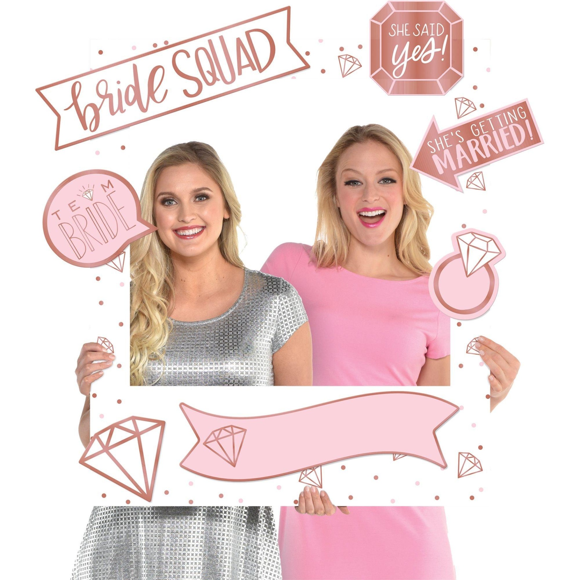 Party guests will strike a pose with the Giant Blush Rose Gold Bridal Shower Photo Frame Kit This polaroidstyle frame features a blush rose gold and white color scheme with diamond and polkadot desig…