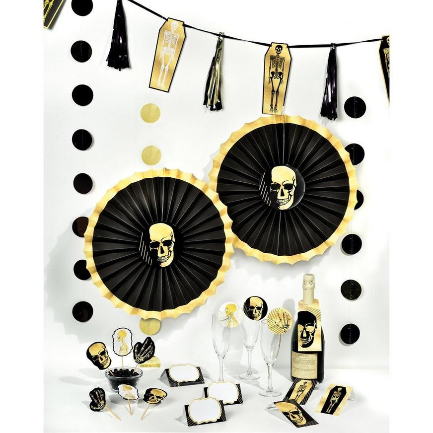 Make the ghosts and goblins feel welcome with a Halloween bar thats boneyard glam This decorating kit has a 9ft banner fans drink markers bottle tags and more and features a black and metallic gold de…