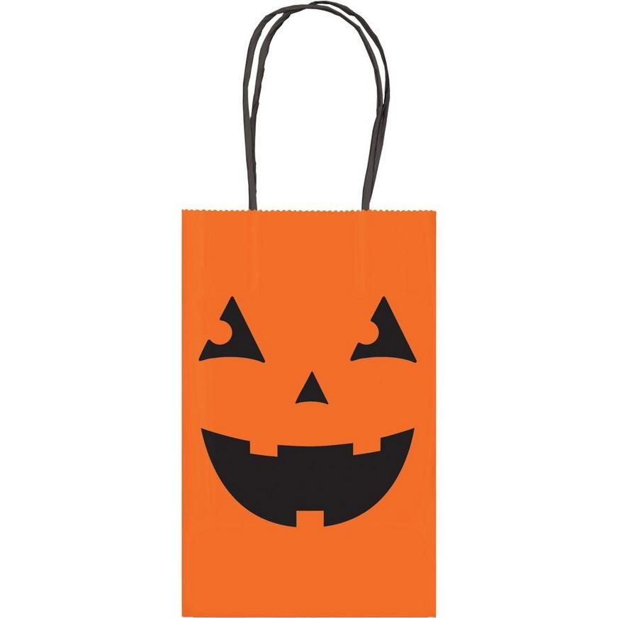 Send off all the kids at your little ones Halloween party with party favors packed into JackoLantern Kraft Favor Bags These paper bags are orange with a jackolantern face on them and include black han…