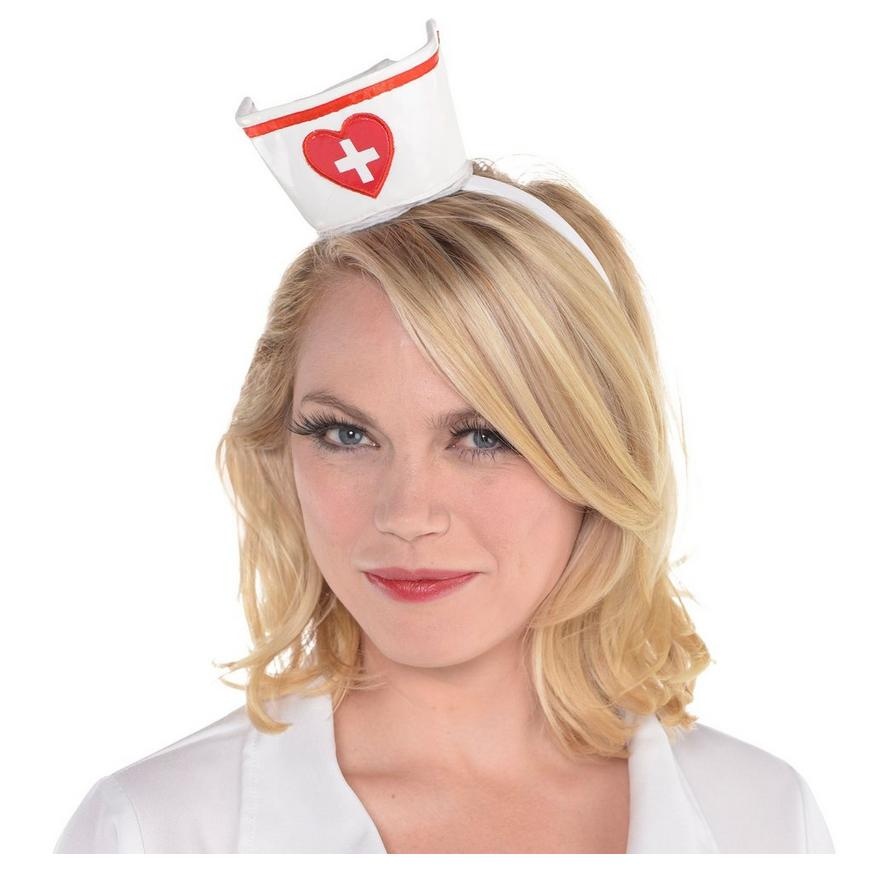 You will make them heart sick when they see you in a Mini Nurse Hat Headband This white mini nurse hat features a red embroidered heart and white printed cross in the center. The hat sits on top of a …