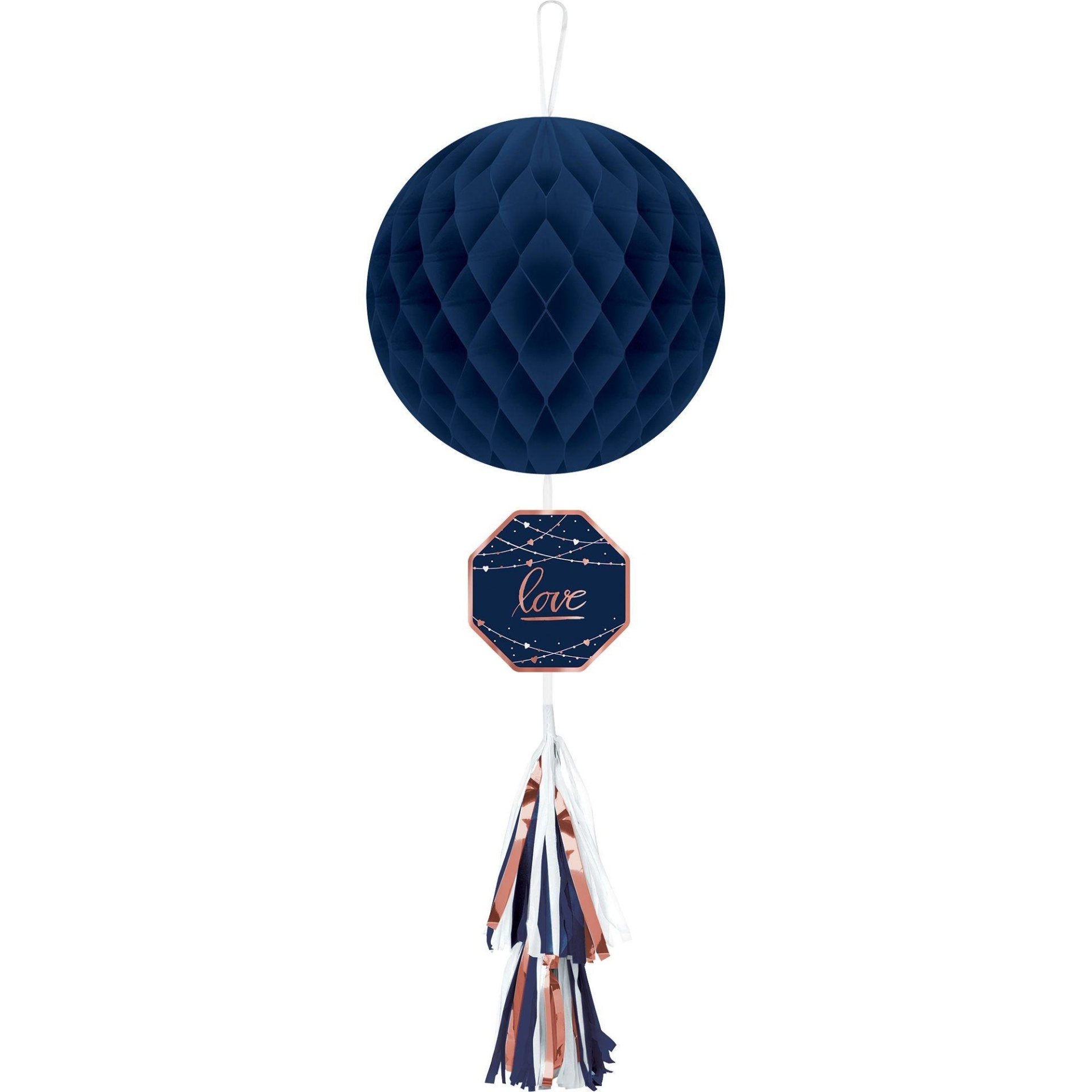 Decorate your navythemed wedding festivities with the Navy Love Honeycomb Decoration with Tail This large sphereshaped decoration in navy and features a navy hexagon cutout with a metallic rose gold t…
