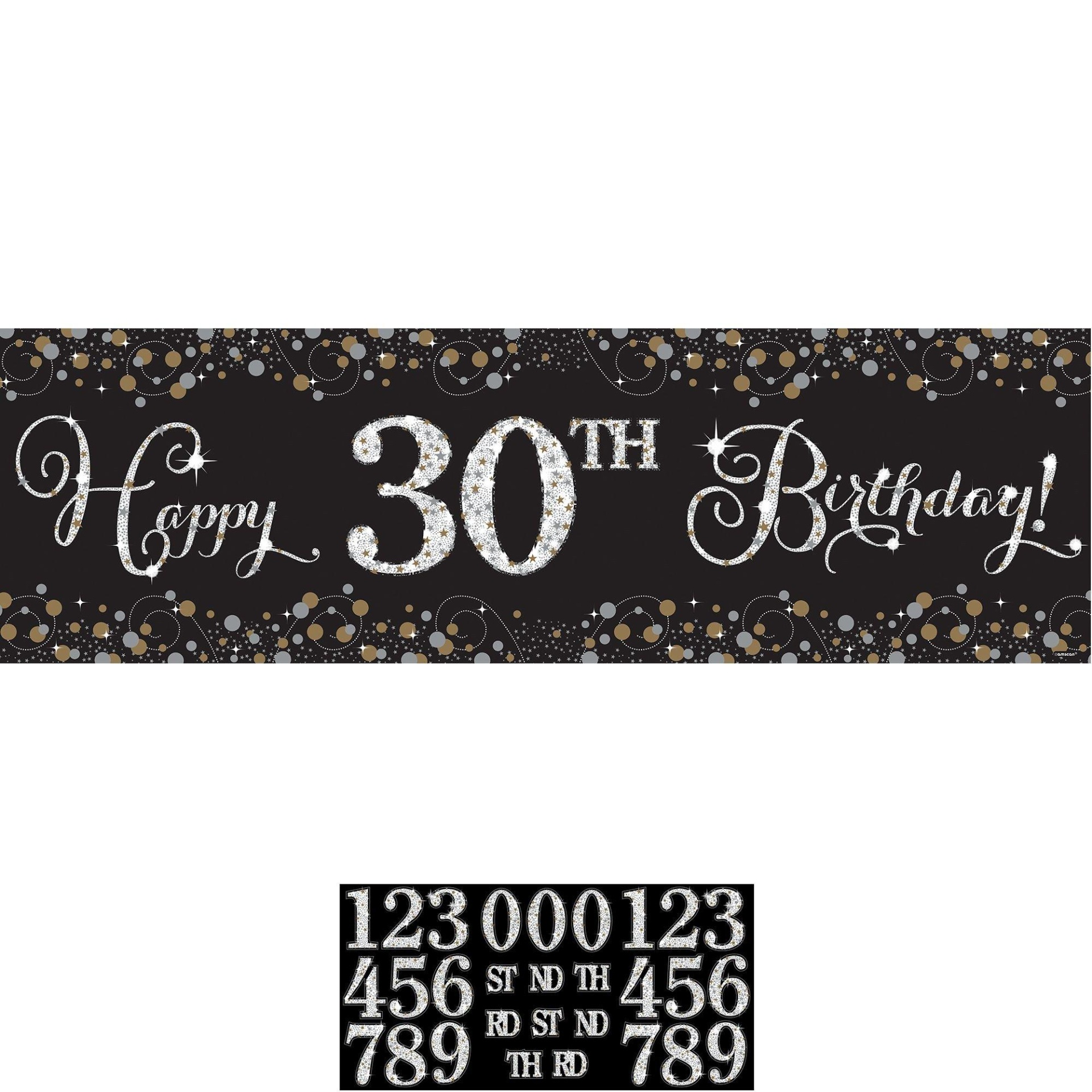 Add a dazzling display to their birthday celebration with a Sparkling Celebration Happy Birthday Banner Kit This banner kit includes a plastic banner with a sparkly bubbly design in black gold and sil…