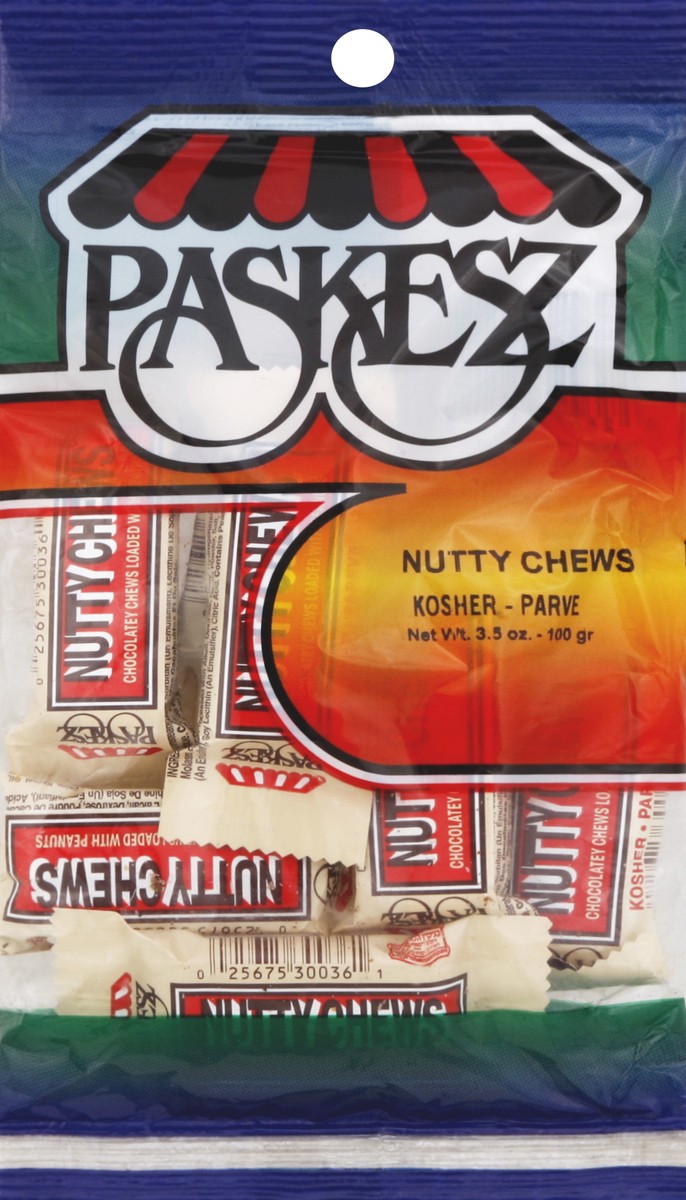 Paskesz Kosher Nutty Chews 3.5 OZ. Disclaimer: H-E-B does not guarantee the accuracy of this Certification file as Supervising Agencies / Rabbis may change.