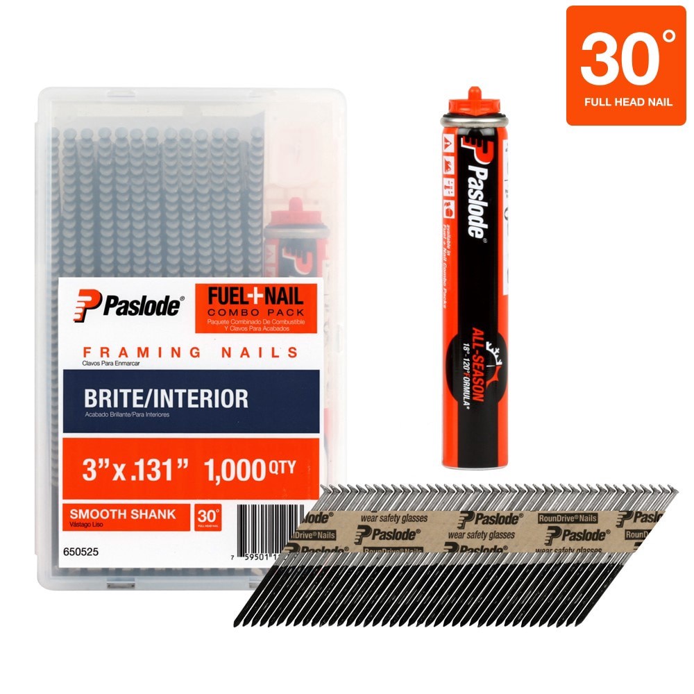 Use with Paslode cordless 30° framing nailers (sold separately). 1000 nails and one framing fuel cell - right sized for interior remodeling and small production framing jobs. Framing fuel with all sea…
