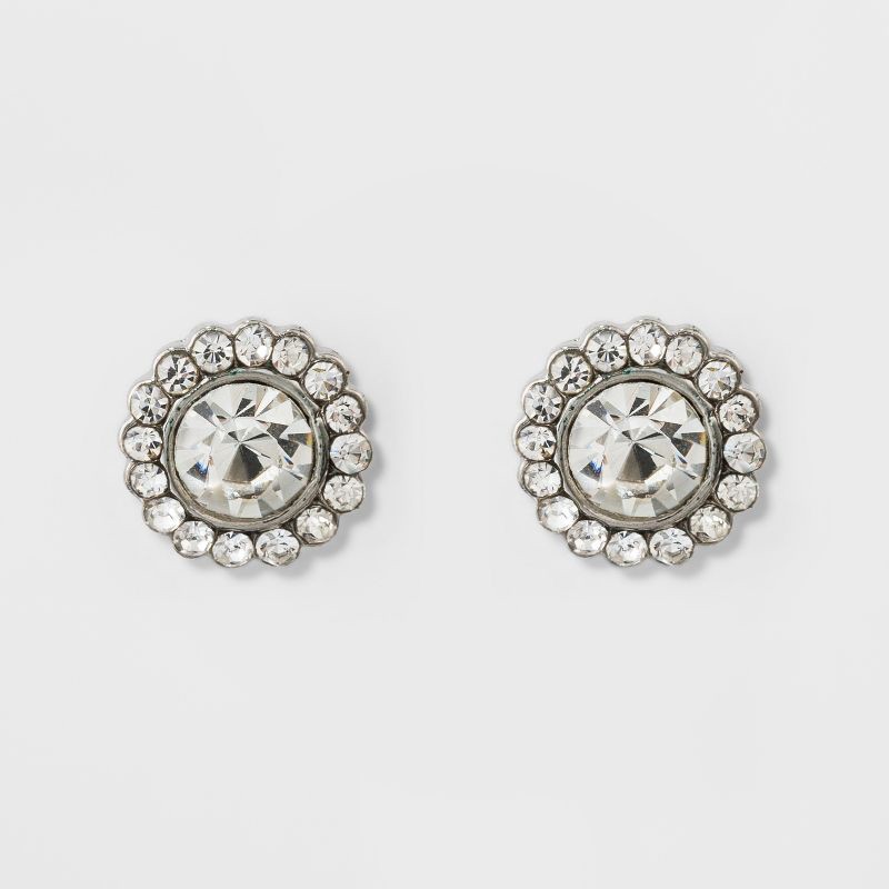 Pave Flower Stud Earrings - A New Day™ Silver: Nickel-Free, Shiny Finish, Post Closure