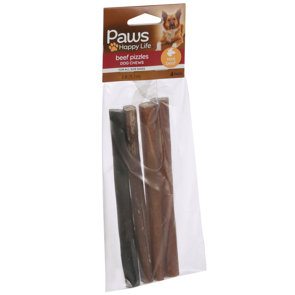 slide 1 of 1, Paws Happy Life Beef Pizzles Dog Chews, 4 ct