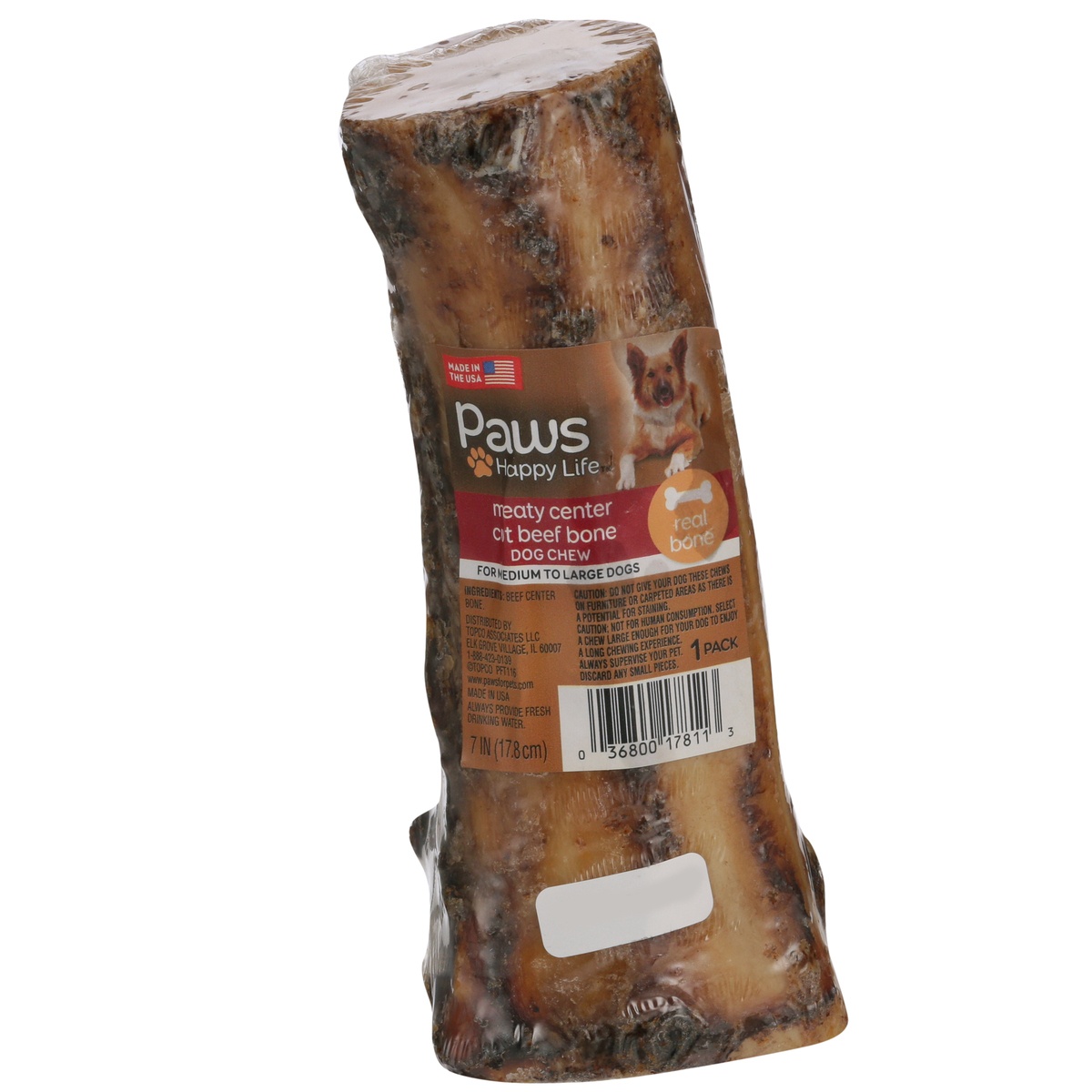slide 1 of 1, Paws Happy Life Meaty Center Cut Beef Bone Dog Chew For Medium To Large Dogs, 1 ct
