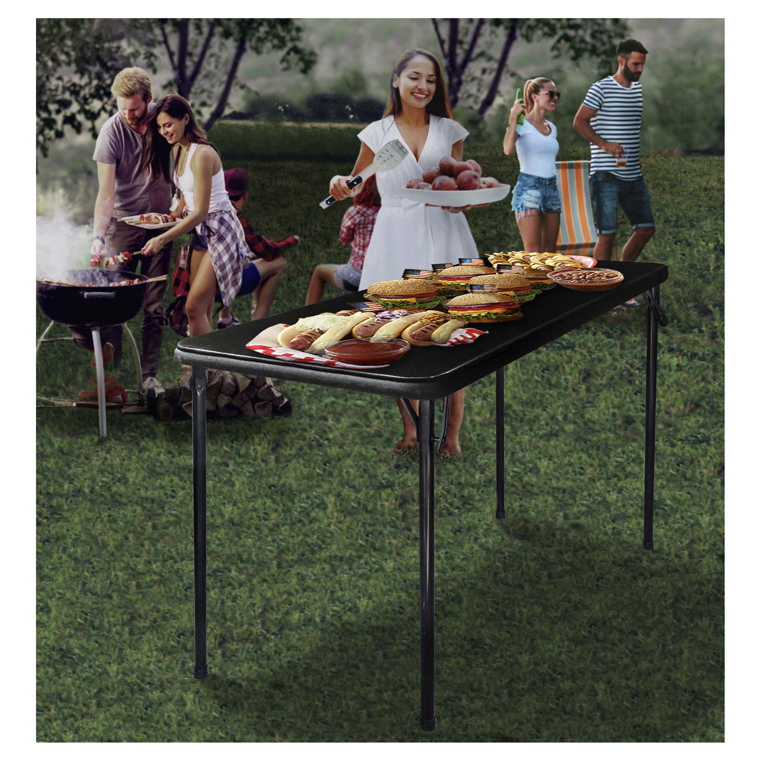 Whether you're celebrating a birthday, holiday or any other event, make sure you have enough table space with the Black Folding Table from Peakform. This metal folding table comes complete with an eas…