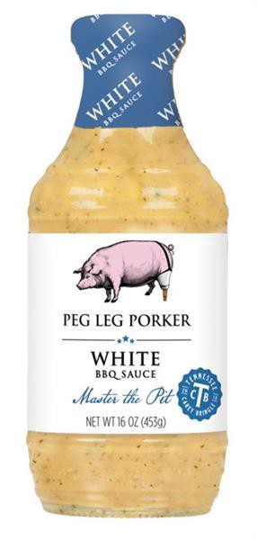 Master the pit with Peg Leg Porker White BBQ Sauce. It's a tangy white sauce with a touch of heat and sweetness perfect for slathering on chicken or ribs on the grill or smoker. Great also for bringin…