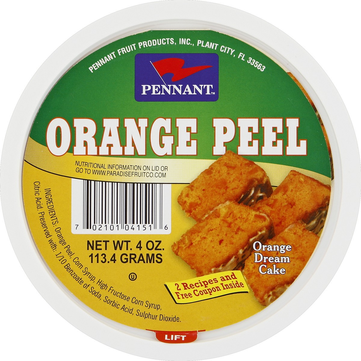 Orange Peel, Corn Syrup, High Fructose Corn Syrup, Citric Acid. Preserved with: 1/10 Benzoate of Soda, Sorbic Acid, Sulphur Dioxide.