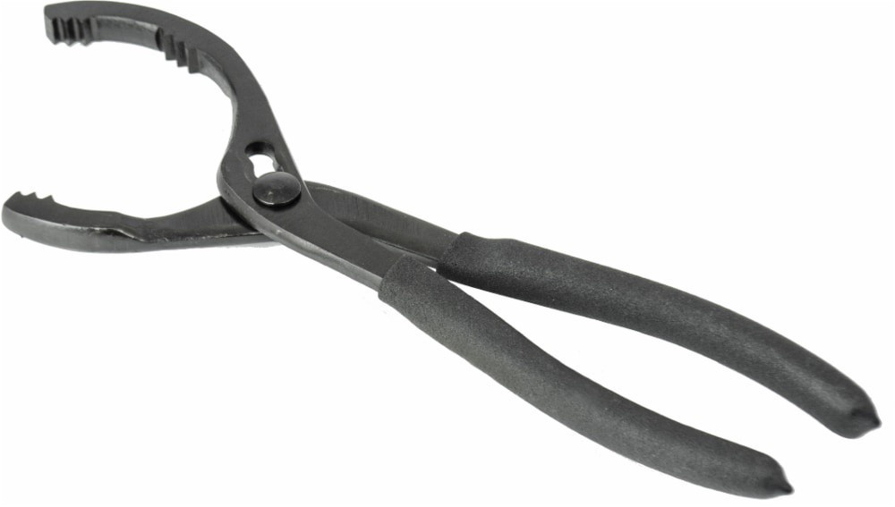 Plier type. Fits most oil filters from 2-3/8 in to 4 in (60 mm to 102 mm) in diameter. To determine the proper filter wrench for your size oil filter, place your oil filter on this ruler starting at t…