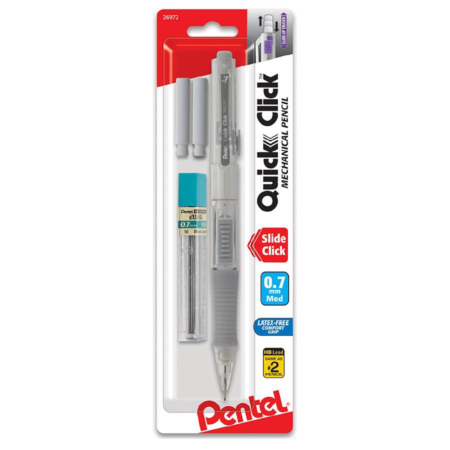 1 – 0.7mm mechanical pencil, 2-refill erasers, 1 – tube with 12 refill leads. Same as No. 2 pencil. Slide click. Latex-free comfort grip. Latex-free eraser won't smudge, ghost or tear your paper. Fun …