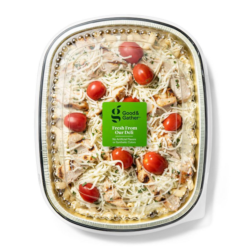 This Pesto Cavatappi Pasta Bake from Good & Gather™ is a great choice for busy weeknights that the whole family will enjoy. This chicken pesto cavatappi features fully cooked grilled chicken breast st…