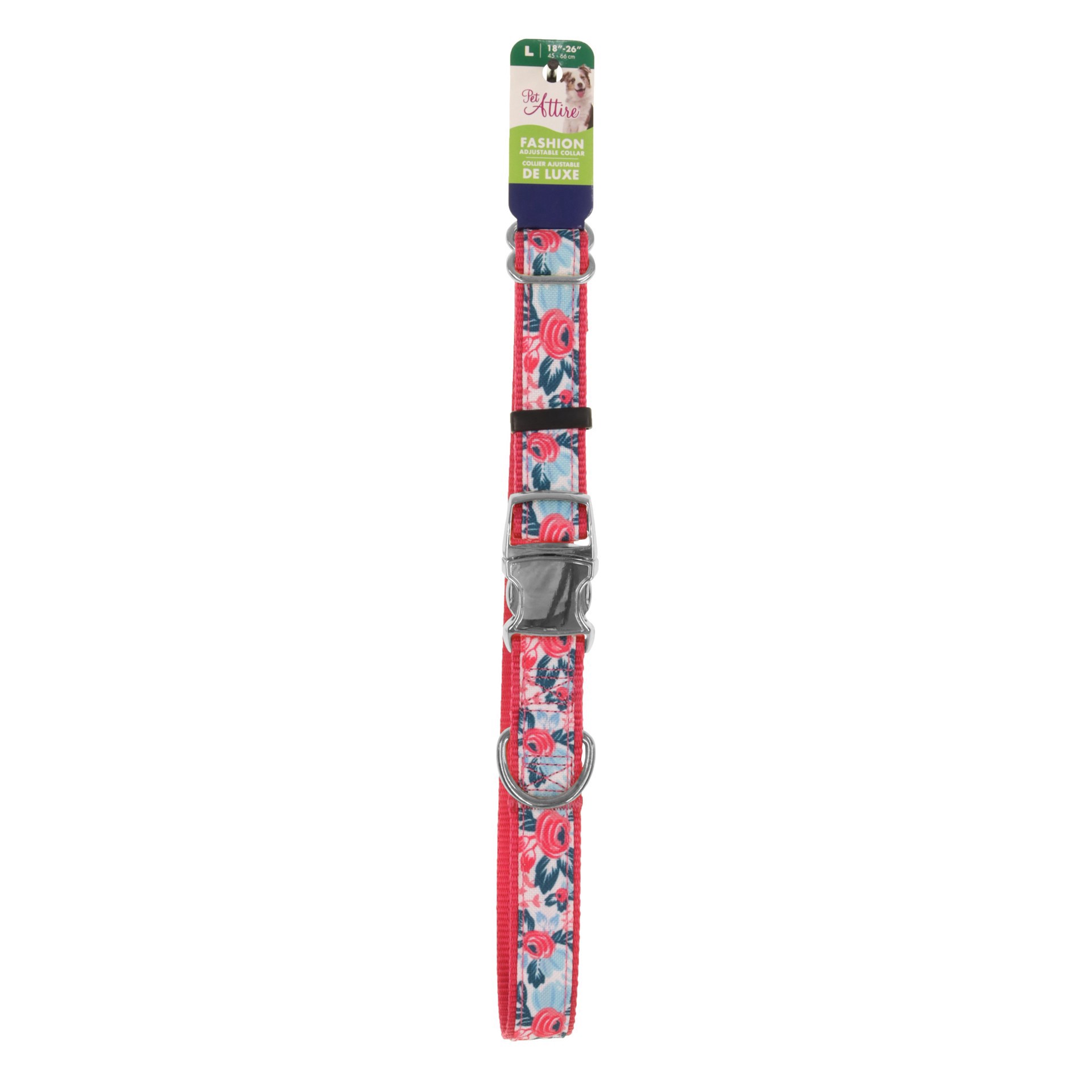 slide 1 of 1, Pet Attire Canvas Ribbon Collar 18-26 Inch Pink Floral, 1 ct