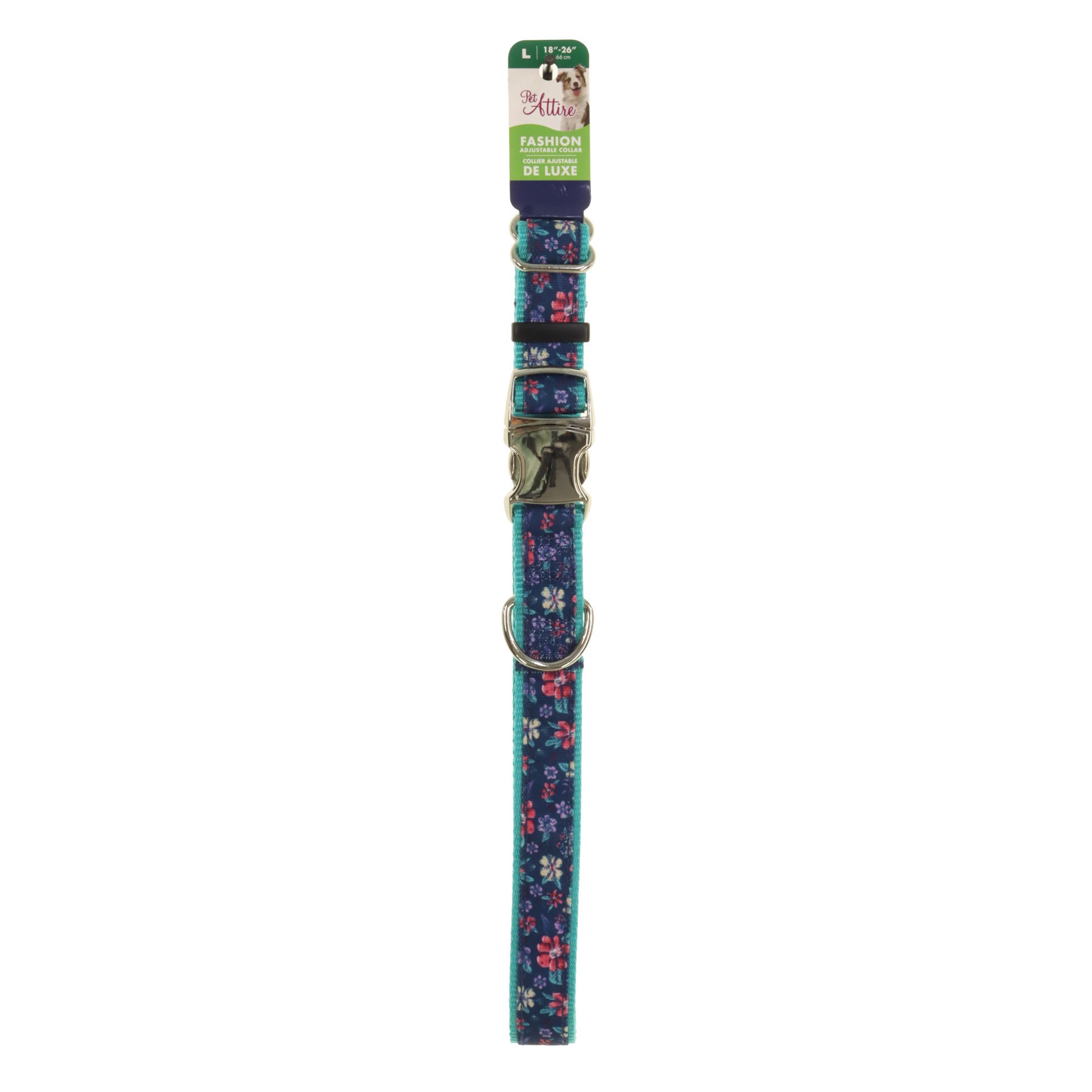 slide 1 of 1, Pet Attire Canvas Ribbon Collar 18-26 Inch Teal Flower, 1 ct
