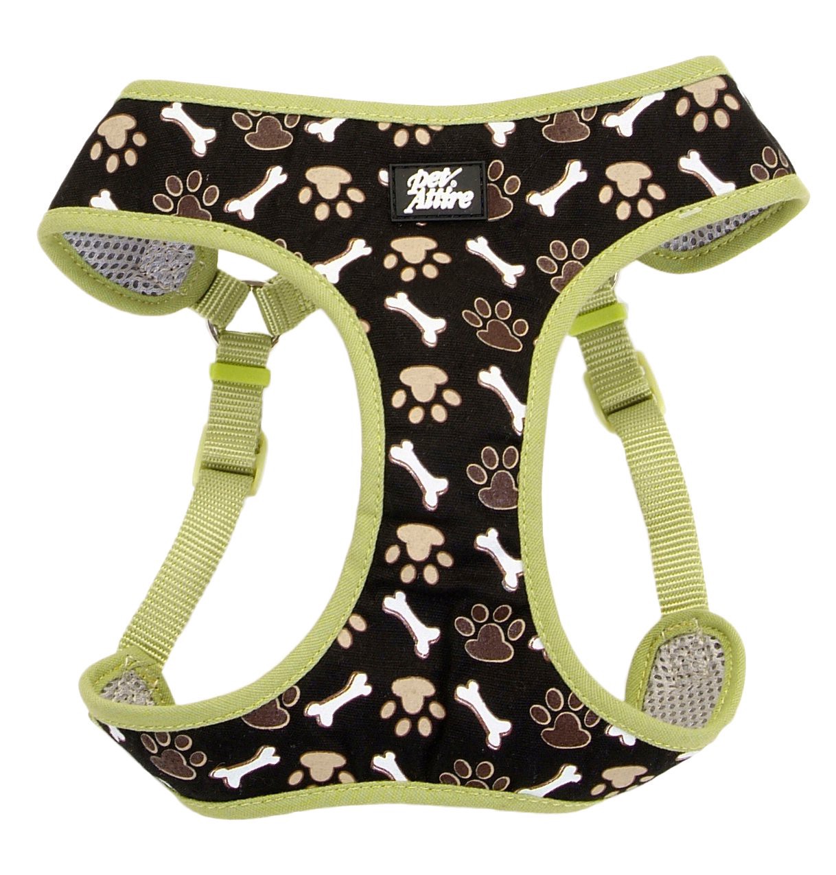 Pet Attire Brown Paws and Bones Designer Wrap Adjustable Harness. Easy to put on and take off, these adjustable nylon step-in style fabric harnesses are lined with lightweight, breathable mesh to keep…