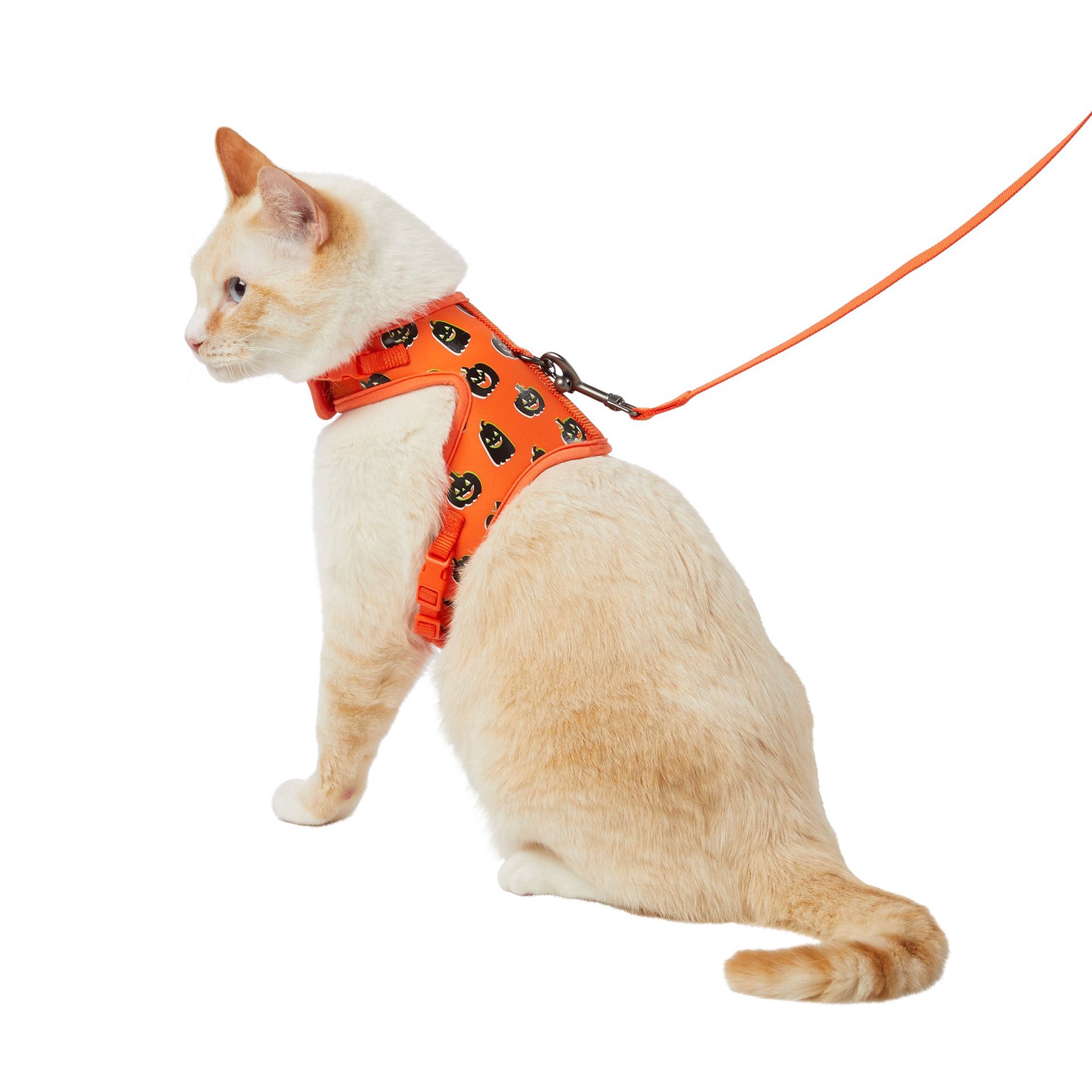 slide 1 of 1, Pet Halloween Thrills & Chills Halloween Pumpkin Cat & Kitten Harness & Leash Combo, 1 ct