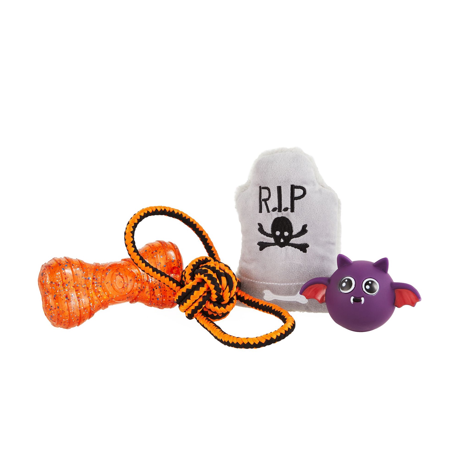 slide 1 of 1, Pet Halloween Thrills & Chills Halloween Tombstone Spooky Fun Value Pack Dog Toys - 4 Pack, 1 ct