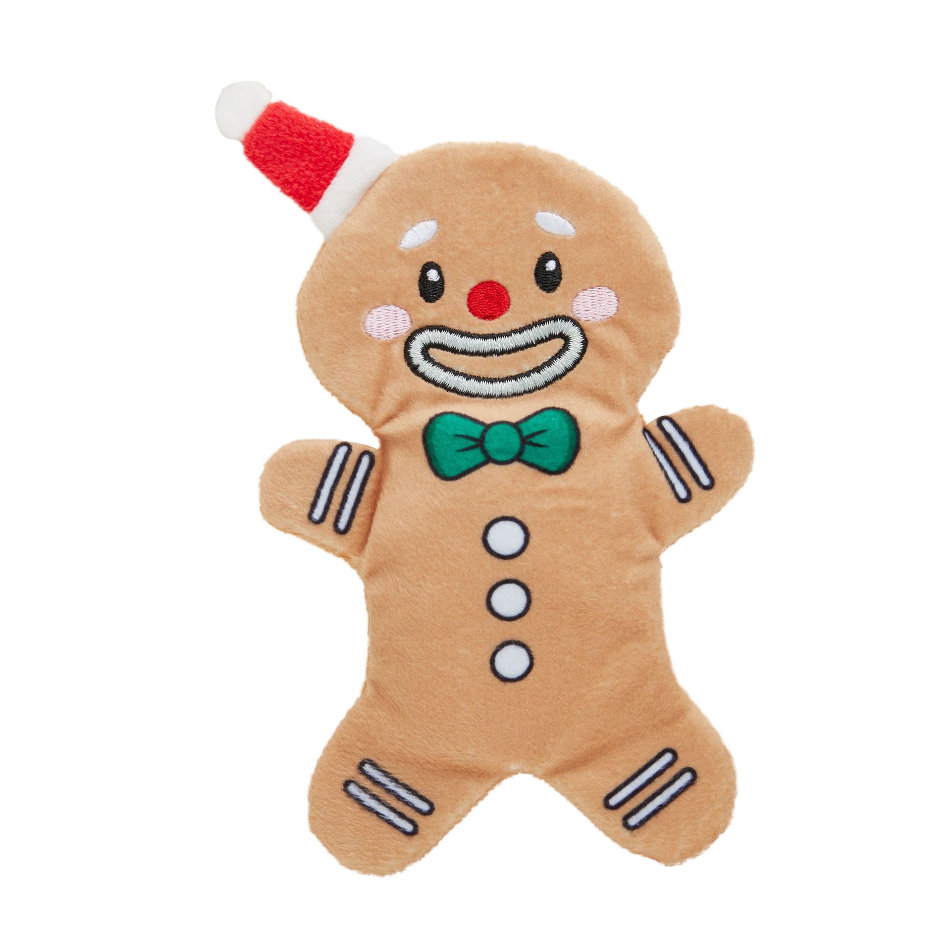 slide 1 of 1, Pet Holiday Merry & Bright Holiday Gingerbread Boy Flattie Dog Toy - Crinkle, Squeaker, 1 ct