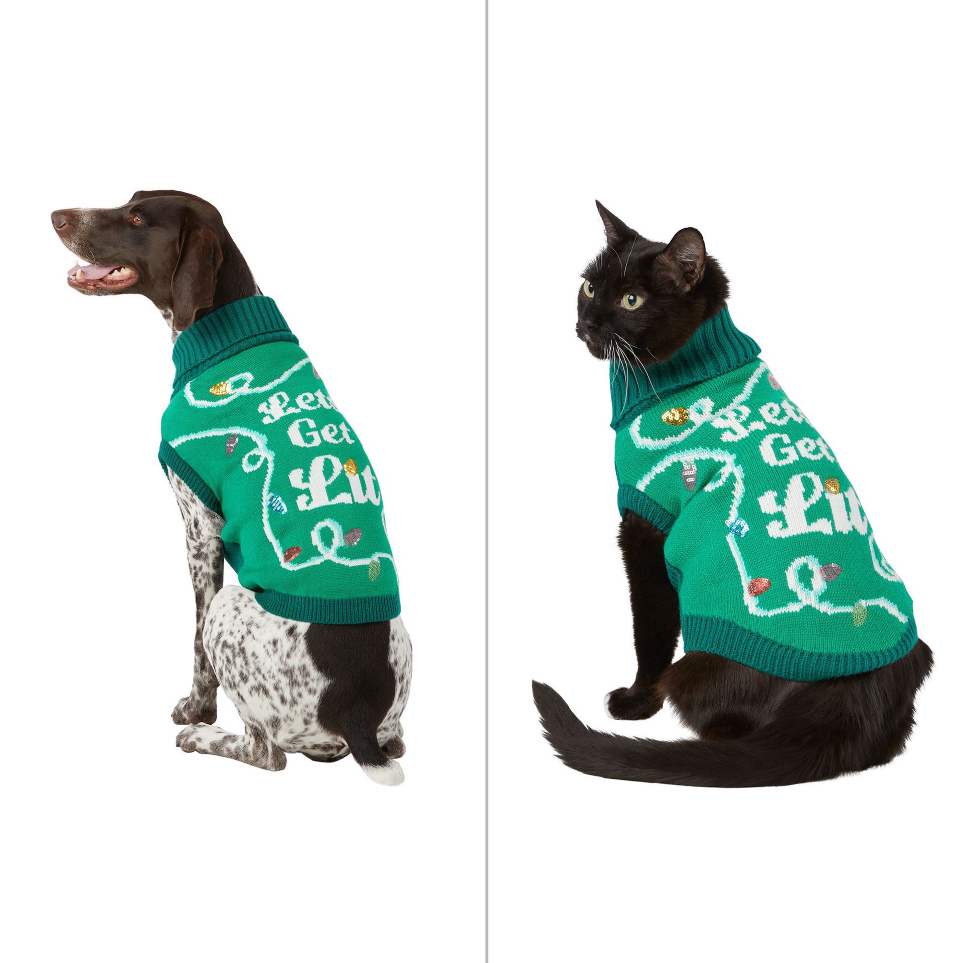 Pet Holiday Merry & Bright Holiday "Let's Get Lit" Ugly Dog & Cat Sweater
