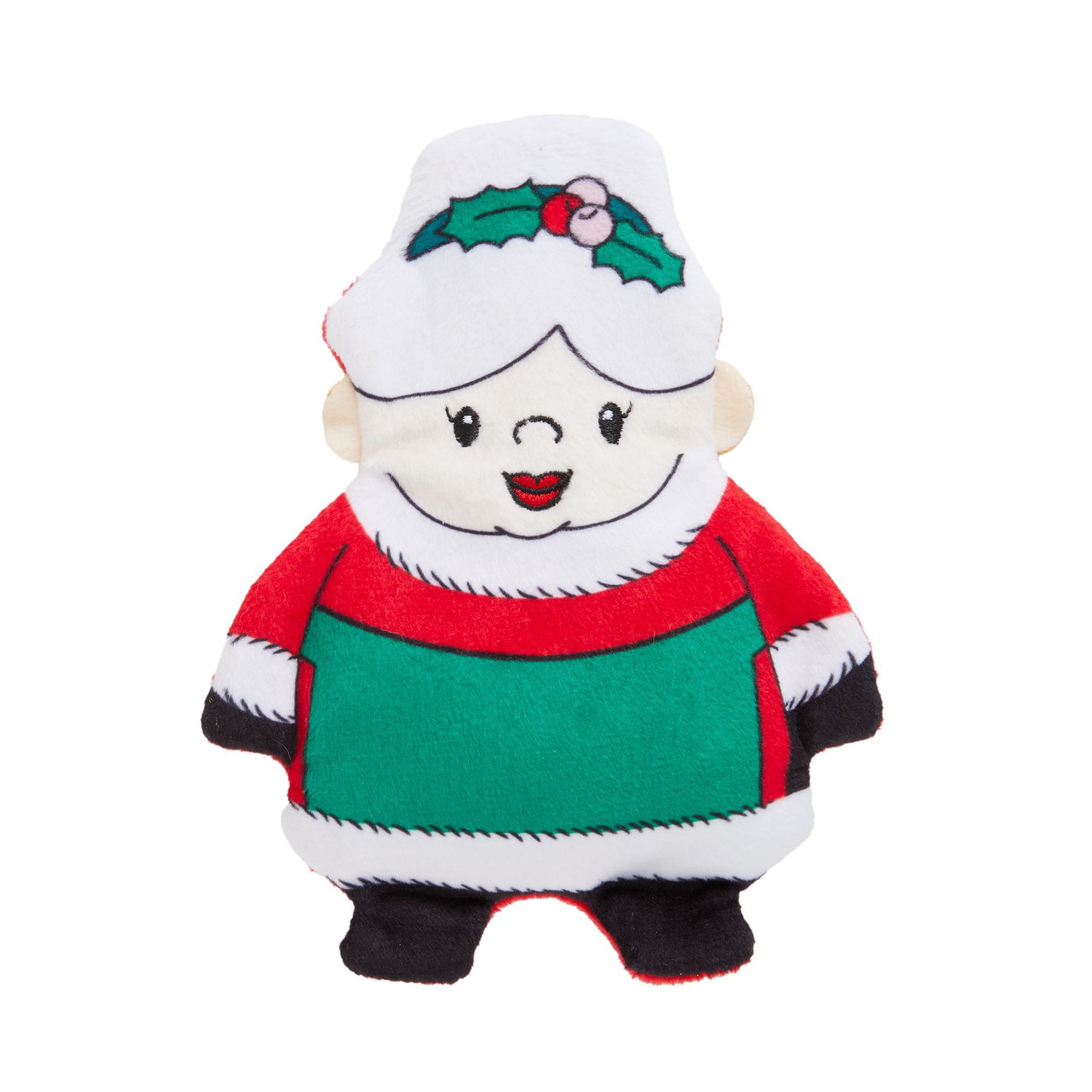 Pet Holiday Merry & Bright Holiday Mrs. Clause Flattie Dog Toy - Crinkle, Squeaker