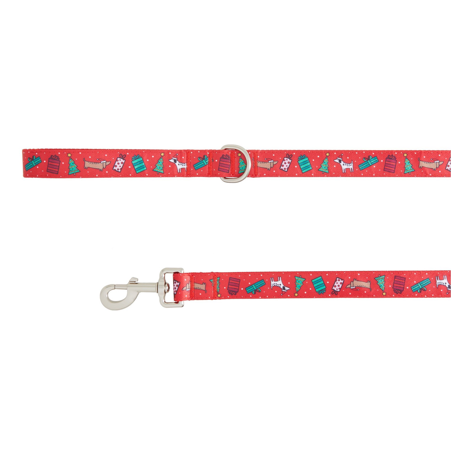 Pet Holiday Merry & Bright Holiday Puppy and Presents Print Dog Leash: 4-ft long