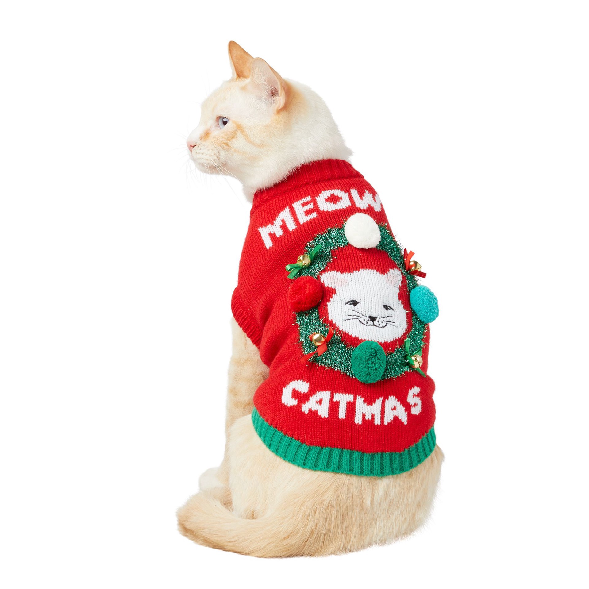 slide 1 of 1, Pet Holiday Merry & Bright Meowy Catmas Ugly Sweater, 1 ct; X small