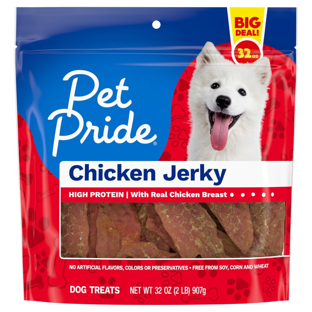 Pet Pride® Chicken Jerky Dog Treats BIG DEAL! satisfies your dog's meaty cravings. Made with real chicken breast, this is a dog treat your pup will love. This tasty jerky has high protein to help them…