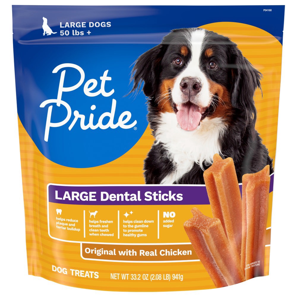 Pet Pride® Large Dental Sticks Dog Treats Original With Real Chicken are a sure delight for any large dog. Containing real chicken, these dog treats help freshen breath and clean teeth when chewed. He…