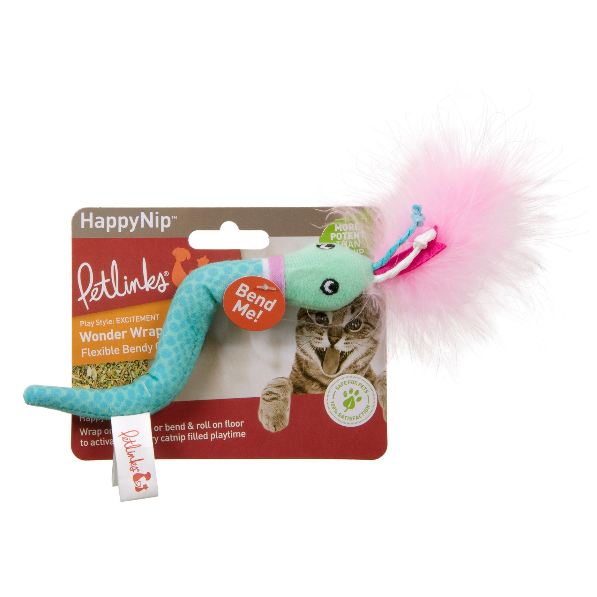 Petlinks HappyNip Wonder Wrap Flexible Bendy Plush Snake Cat Toy activates playtime with feathers, catnip and silvervine. You can bend this adorable feathery snake around chair legs, banisters or otheā¦