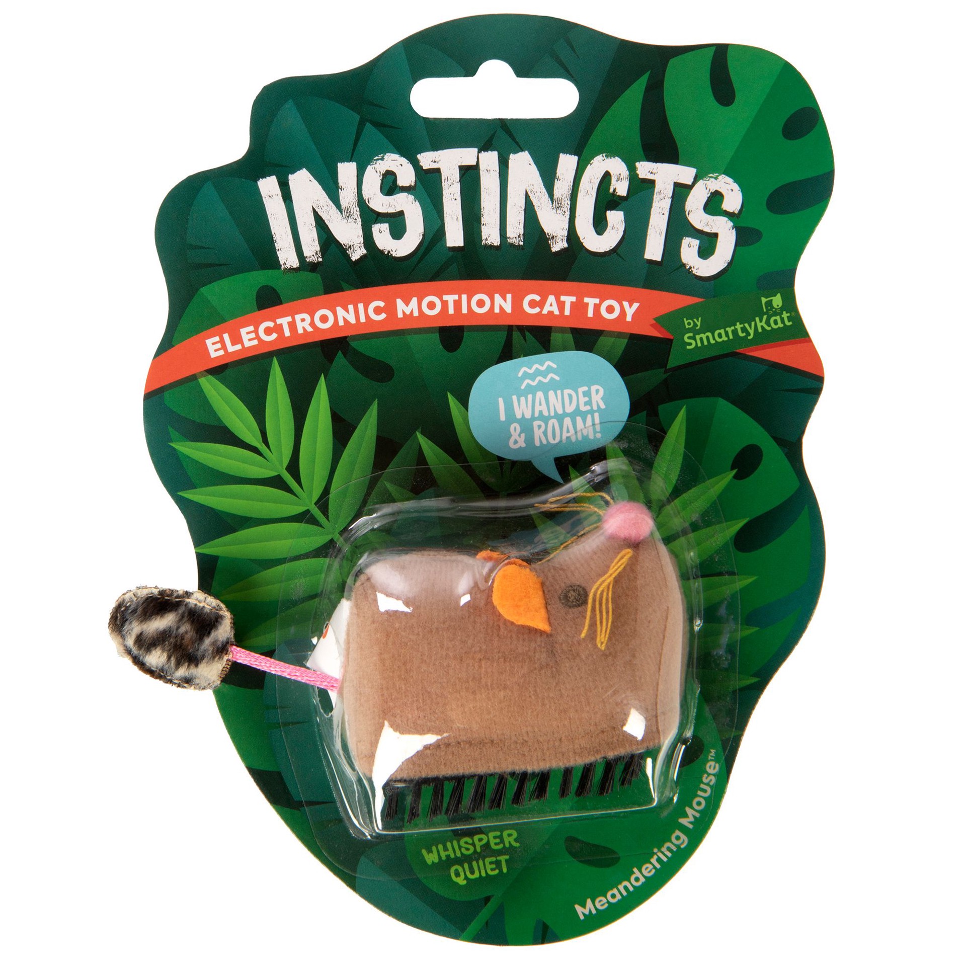 Instincts by Petlinks Meandering Mouse releases your cat's inner instincts with gentle roaming motions and dangling cord tail with a faux fur tip. Wandering in circles and curves, this soft plush mous…
