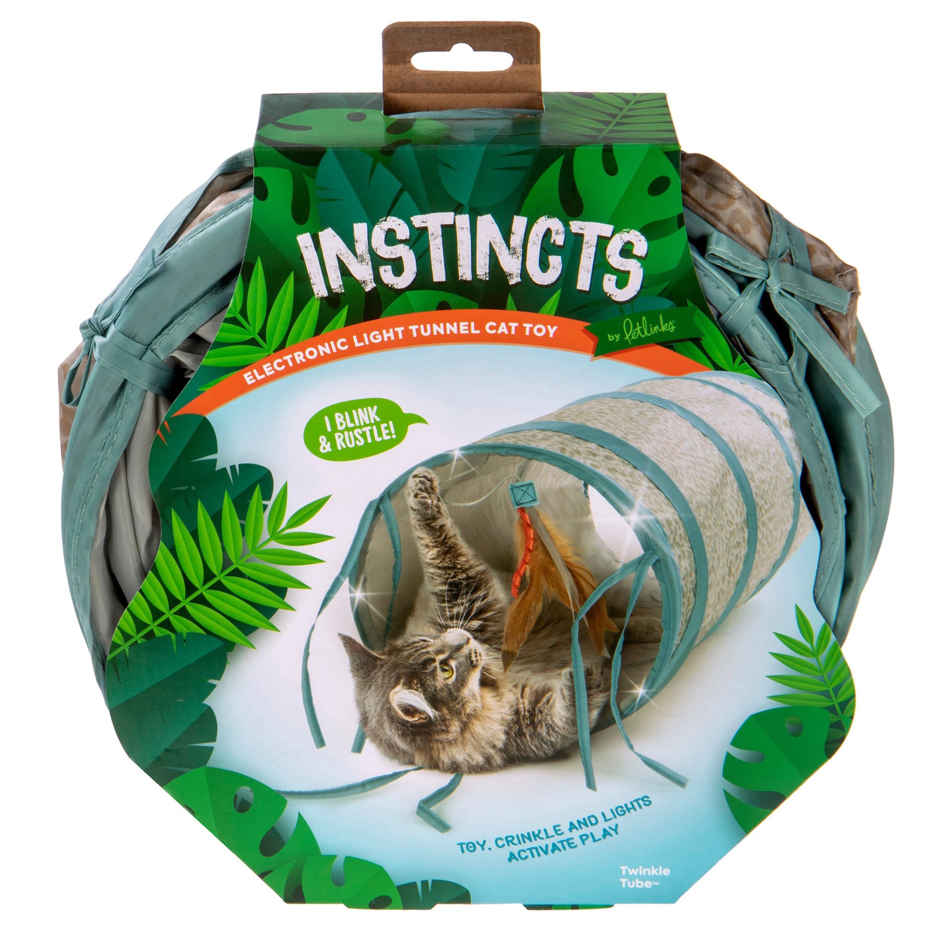 Instincts Twinkle Tube releases your cat's inner instincts with intriguing blinking lights, crinkle fabric and attached dangling teaser toy. Long enough for cats to zoom and race, and big enough for c…