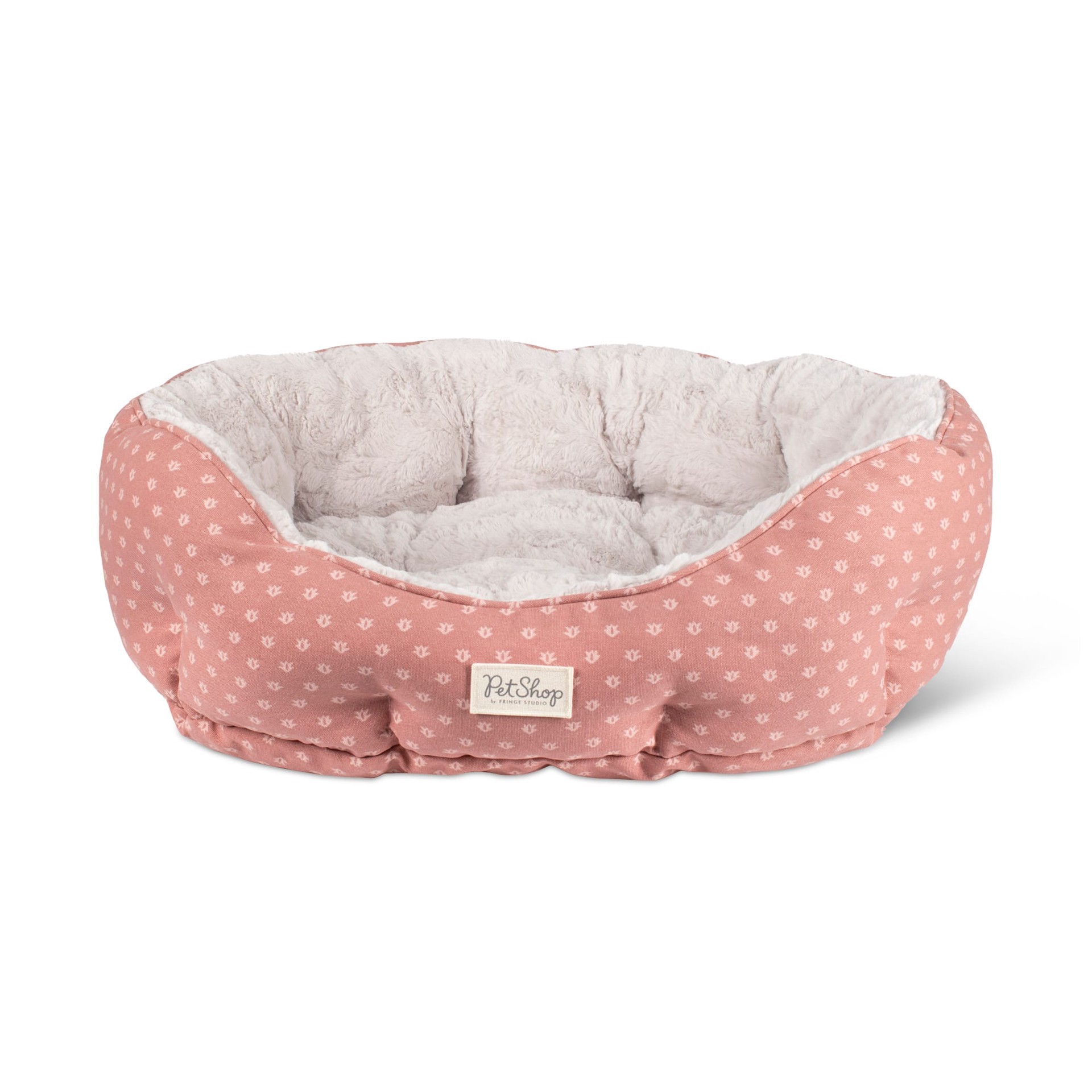 PetShop by Fringe Studio Ditsy Block Dark Blush Round Cuddler Pet Bed, 29" L X 24" W X 9" H, Pink, Medium