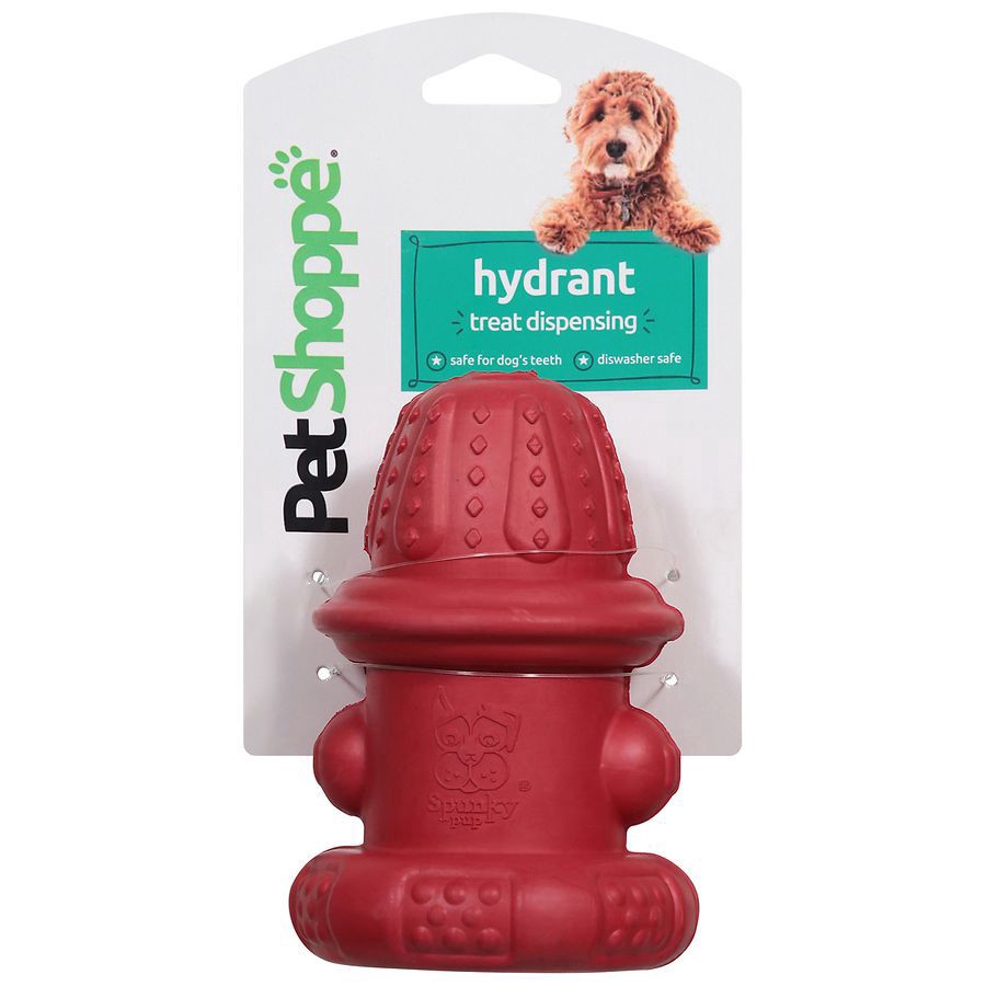 The PetShoppe treat dispensing hydrant dog toy features thick-walled natural rubber construction for durable fun. The hydrant is textured to promote healthy teeth and gums as well. Spread peanut butteā¦