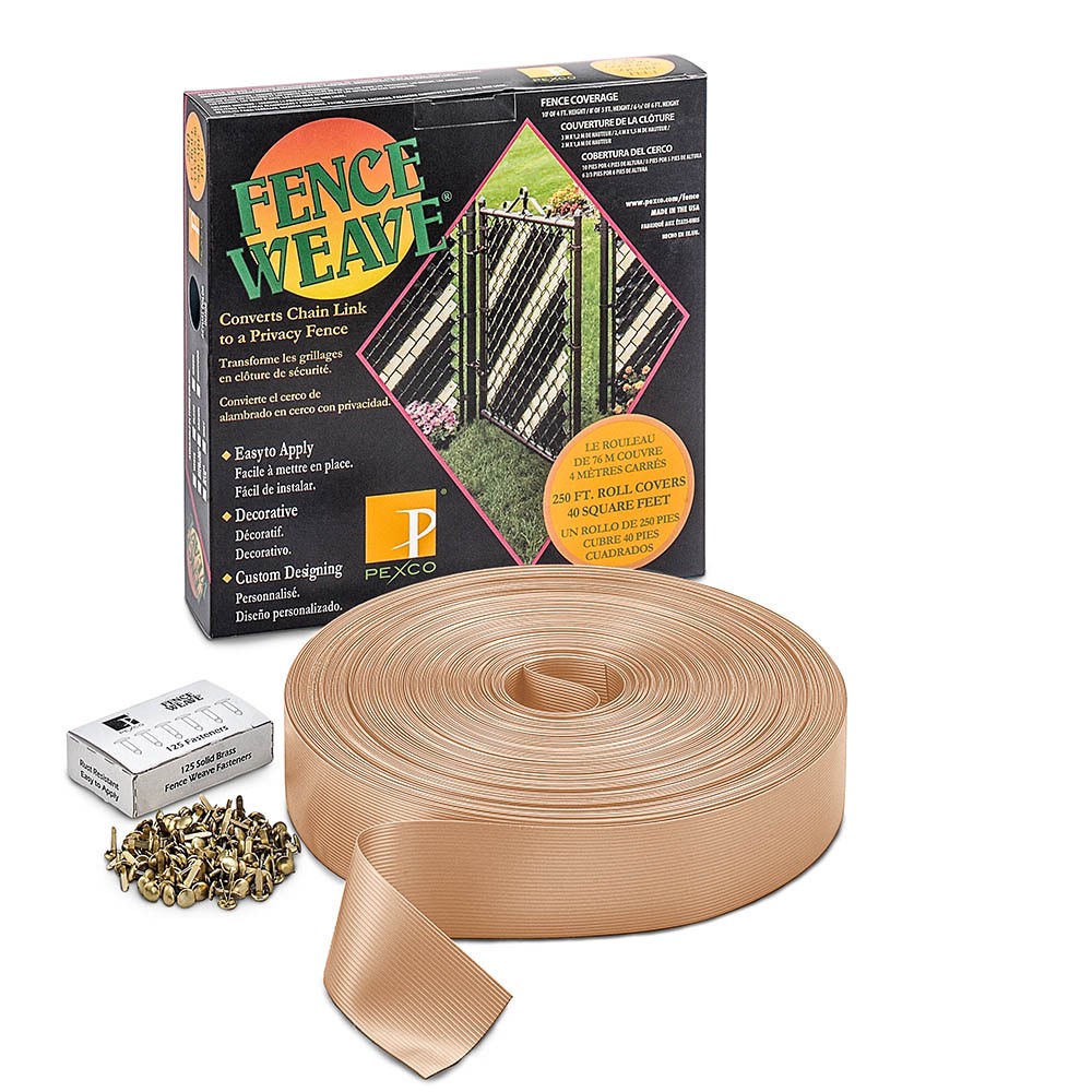 Included: (1) 250-ft roll of fence weave ® (actual 250-ft x 0.16-ft); with (125) solid brass fasteners and installation instructions. Fence weave ®; is the do it yourself solution for homeowners looki…