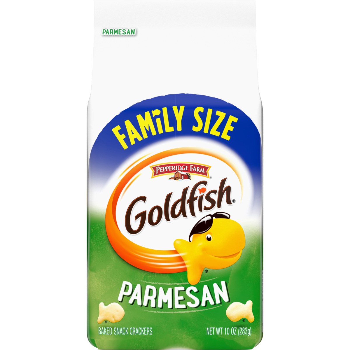 Our Goldfish Parmesan snack crackers have a deliciously perfect balance of parmesan cheese with a crunch that everyone can smile about. They're always baked with 100% real cheese and made with no arti…