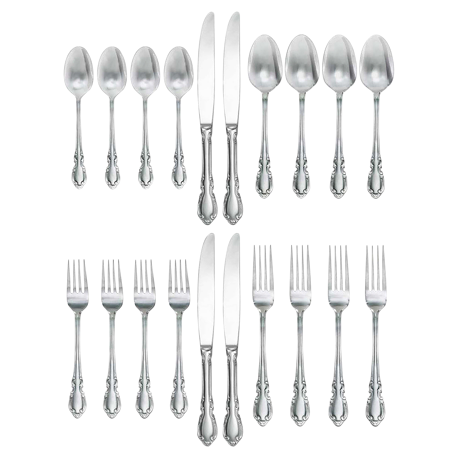 This Pfaltzgraff Vienna 20 Piece Flatware Set features a gorgeous scalloped handle with scroll and floral detailing, adding sophistication to your tabletop Crafted of superior quality 180 stainless st…