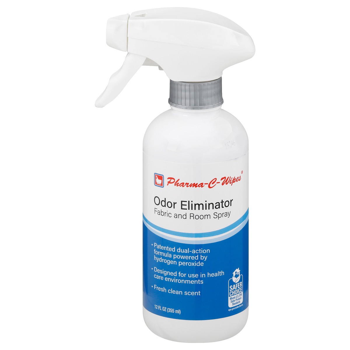 Fabric and room spray. Patended dual-action formula powered by hydrogen peroxide. Designed for use in health care environments. Fresh clean clean scent. Safer Choice. Meets U.S. EPA Safer Product Sta…